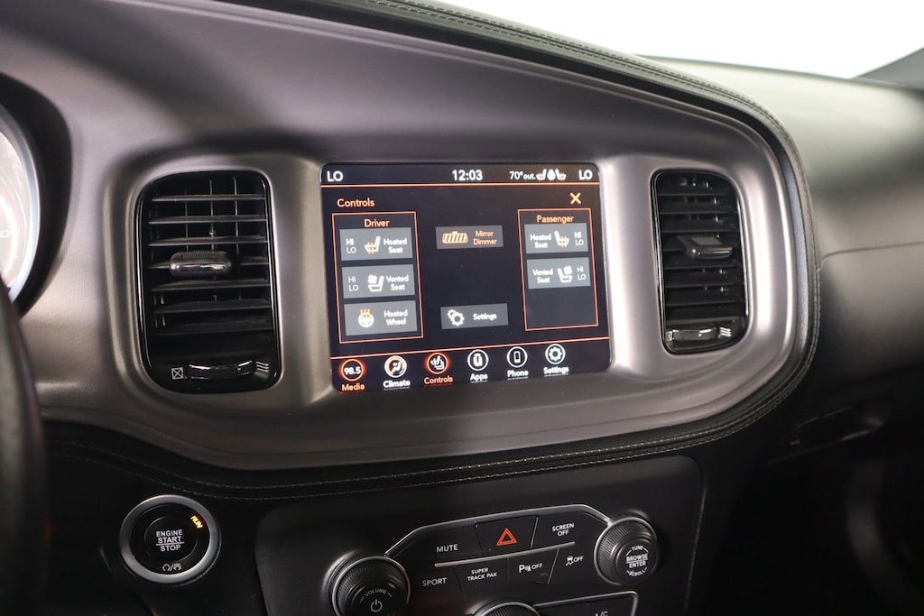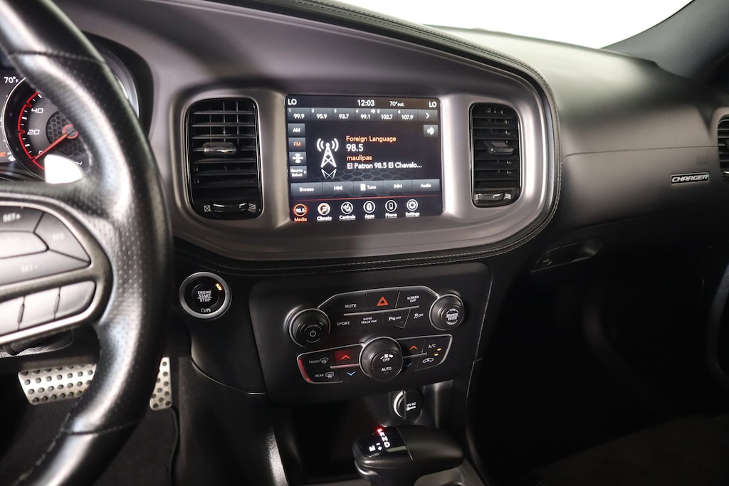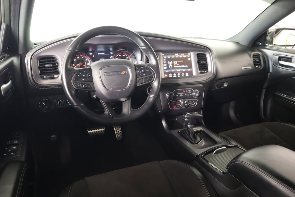The Charger GT's bold and aggressive styling is further enhanced by the Blacktop Package, which adds a sleek gloss black finish to the grille badge, decklid badge, and 20-inch wheels. The PLUS GROUP takes the premium features to the next level, with highlights including blind spot monitoring, heated steering wheel, premium-stitched dashboard, and more.